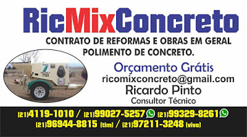 Ric Mix Concreto & Lajes Treliçadas de Isopor Ou Tijolos ; Na medida certa para sua obra orçamento ; visita Gratis Contato 21 990275257/993298261/2141191010
