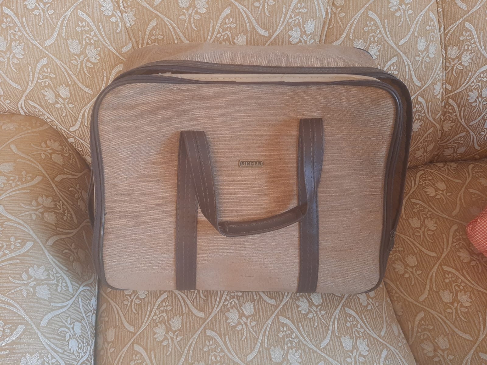 Máquina de costura portátil Singer excelente estado 11 pontos diferentes c/ acessórios agulhas lâmpada caixa com alças em couro R$ 650 T. 2199979-0043